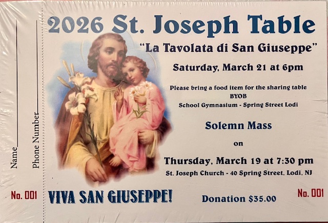 As we look at the present and future, we pray that through the intercession of Saint Joseph that we will once again become a strong group of members. Today our society consist of 30+ members. The meeting is conducted in both English and Italian to accommodate all members. It is difficult in being able to try to run events such as a society dinner dance, picnic, or other activities without more members. However, we do participate in processions of other local societies such as: Immaculate Conception of Lodi, Saint Anthony of Garfield, Sacred Heart of Garfield, San Pio of Garfield, San Ciro of Garfield, San Pio of Hackensack, the Frainese Society of Clifton,Saint Gerard of Newark, and San Rocco of NYC. We make donations to the needy and contribute funds to our church's Food Pantry for the poor. Our meetings are held usually on a Monday once a month in the church rectory.